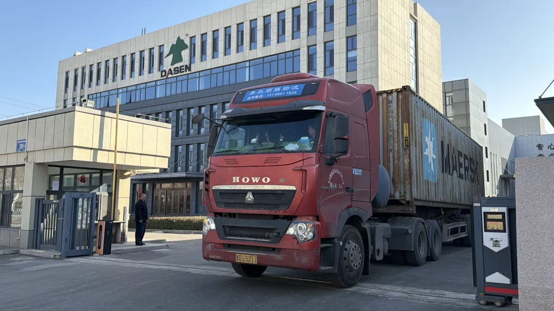 十輛滿載著大森速凍設(shè)備的集裝箱半掛車(chē)陸續(xù)裝箱駛離廠區(qū),向著青島港出發(fā),開(kāi)啟跨國(guó)履約之旅。